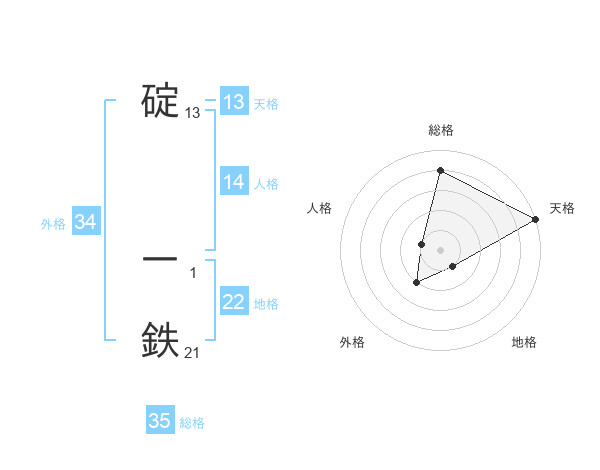 碇 一鉄さんの天格は13画の5点!