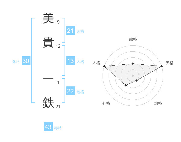 美貴 一鉄さんの天格は21画の5点!