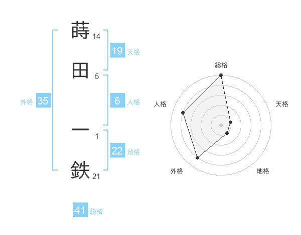 蒔田 一鉄さんの総格は41画の5点!