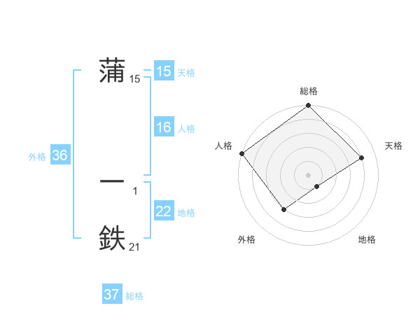 蒲 一鉄さんの総格は37画の5点!