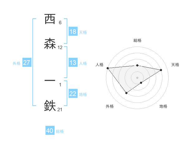 西森 一鉄さんを姓名の画数から五運を鑑定