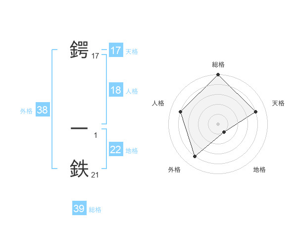 鍔 一鉄さんの総格は39画の5点!