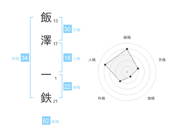 飯澤 一鉄さんの総格は52画の4点!