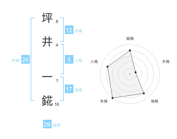 坪井 一錵さんの総格は29画の4点!