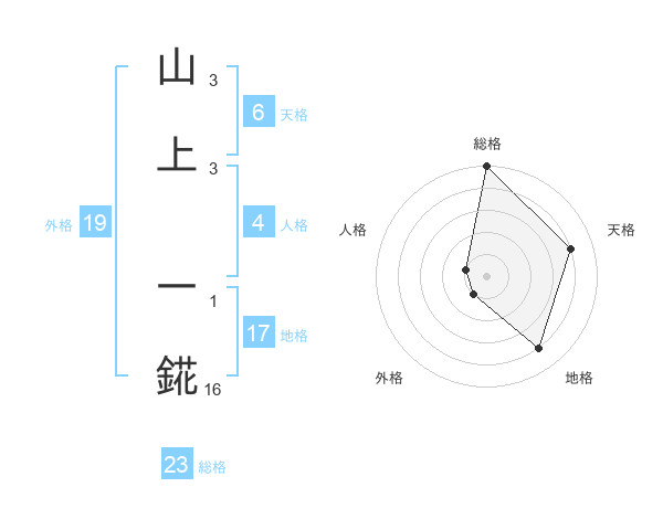 山上 一錵さんの総格は23画の5点!