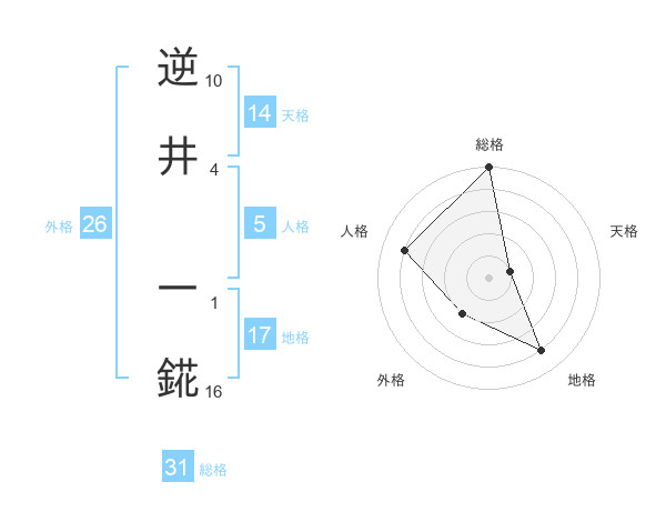 逆井 一錵さんを姓名の画数から五運を鑑定