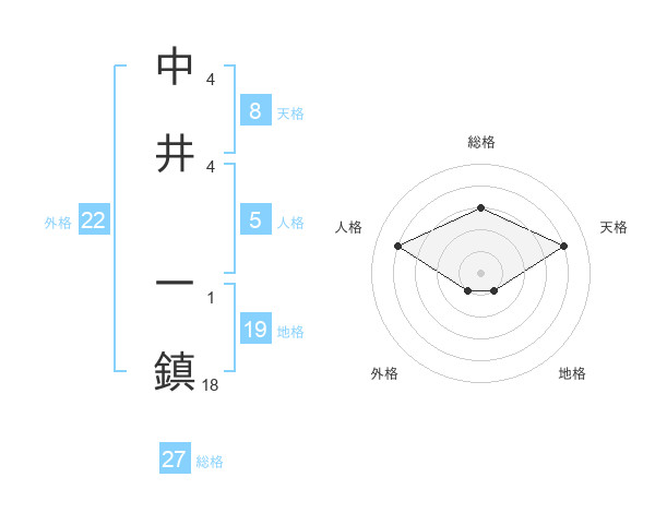 中井 一鎮さんを姓名の画数から五運を鑑定