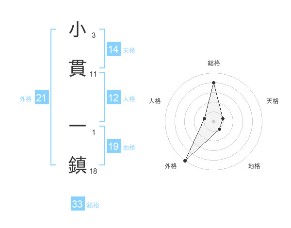 小貫 一鎮さんを姓名の画数から五運を鑑定