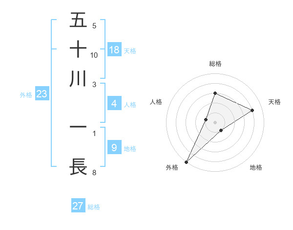 五十川 一長さんの総格は27画の3点!