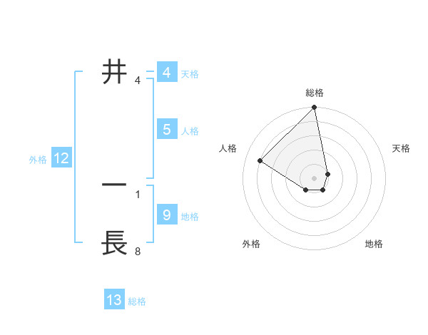 井 一長さんの総格は13画の5点!