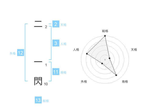 二 一閃さんの外格は12画の1点!