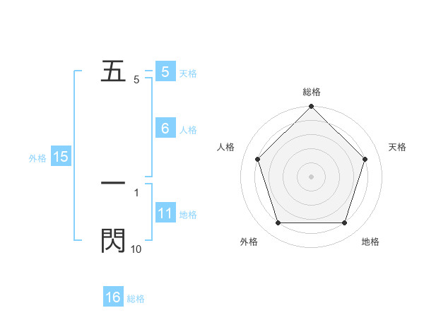 五 一閃さんの総格は16画の5点!