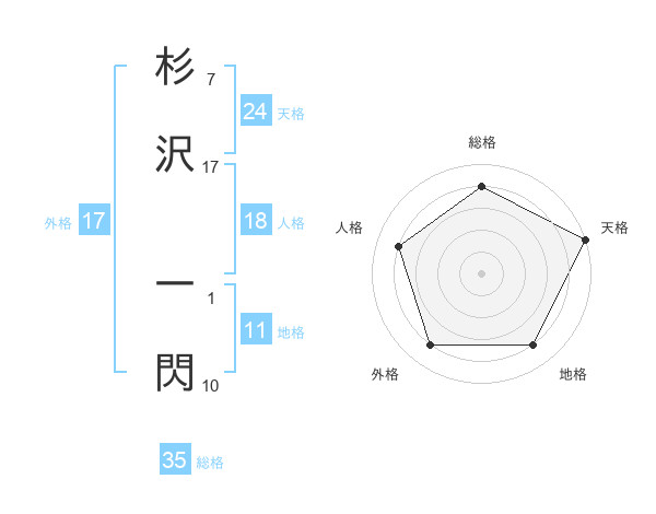 杉沢 一閃さんの総格は35画の4点!