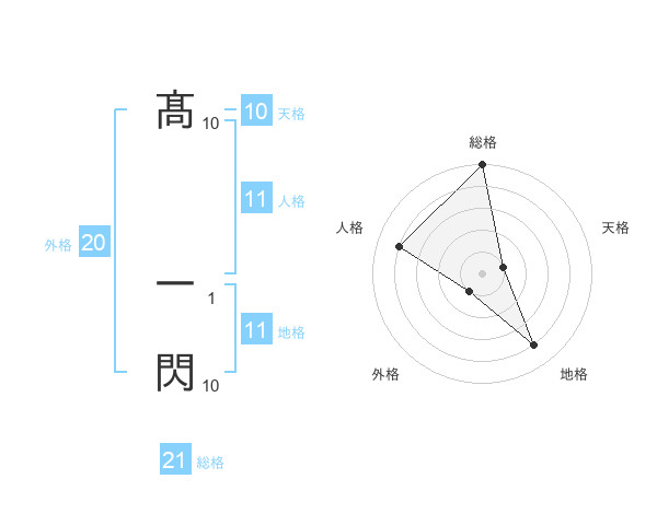 髙 一閃さんの総格は21画の5点!