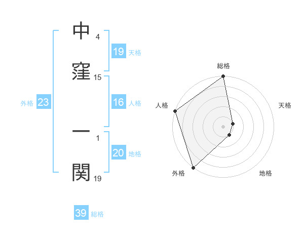 中窪 一関さんの外格は23画の5点!