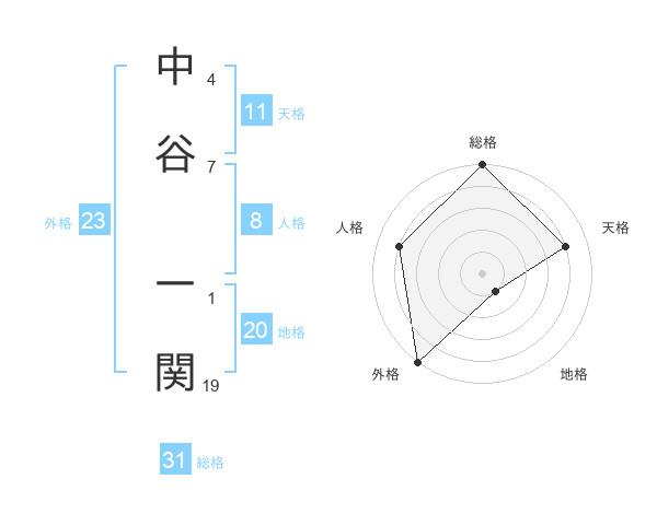 中谷 一関さんの総格は31画の5点!