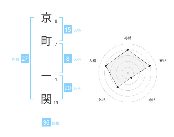 京町 一関さんの総格は35画の4点!