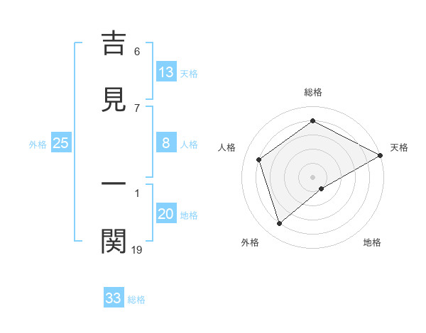 吉見 一関さんの天格は13画の5点!