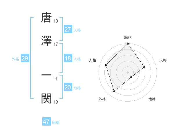 唐澤 一関さんの総格は47画の5点!