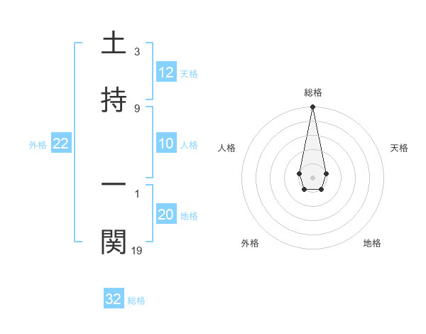 土持 一関さんの総格は32画の5点!