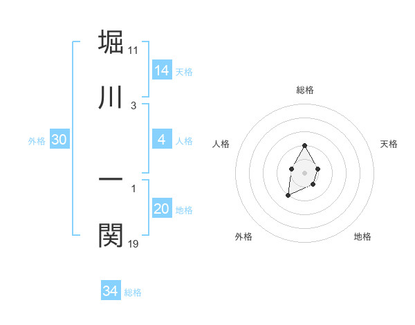 堀川 一関さんの総格は34画の2点!