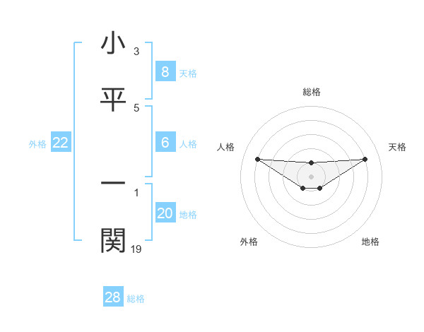 小平 一関さんの総格は28画の1点!