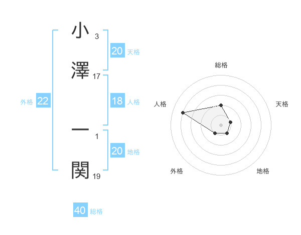 小澤 一関さんの地格は20画の1点!