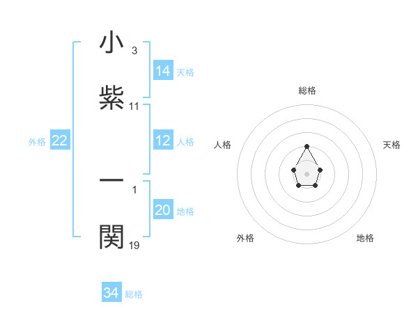 小紫 一関さんの総格は34画の2点!