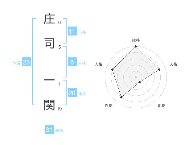 庄司 一関さんの総格は31画の5点!