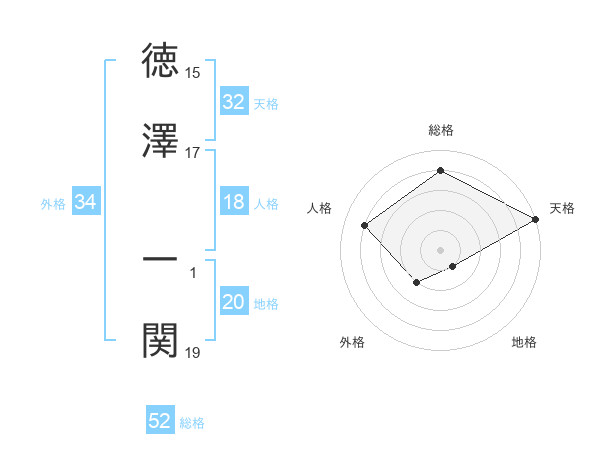 徳澤 一関さんの総格は52画の4点!