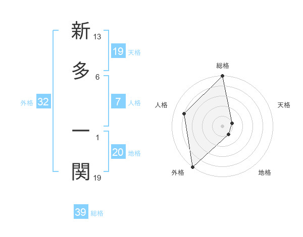新多 一関さんの外格は32画の5点!