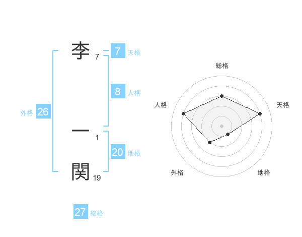 李 一関さんの総格は27画の3点!
