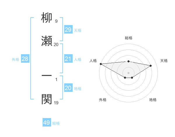 柳瀬 一関さんの総格は49画の2点!