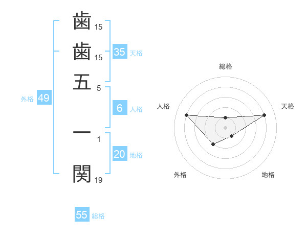 歯歯五 一関さんの地格は20画の1点!