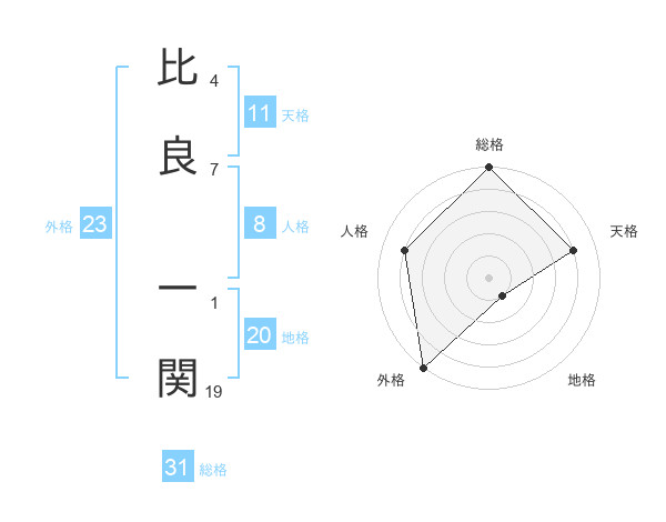 比良 一関さんの総格は31画の5点!