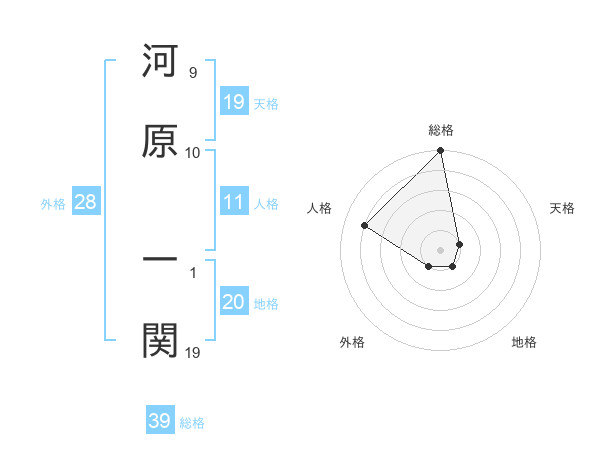 河原 一関さんの総格は39画の5点!