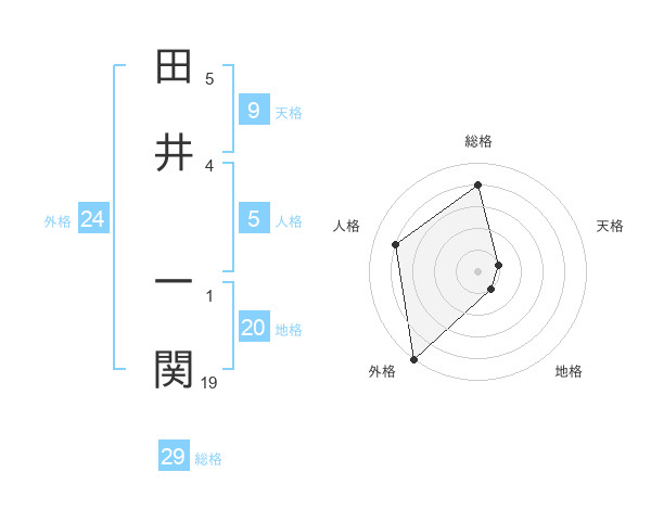 田井 一関さんの総格は29画の4点!