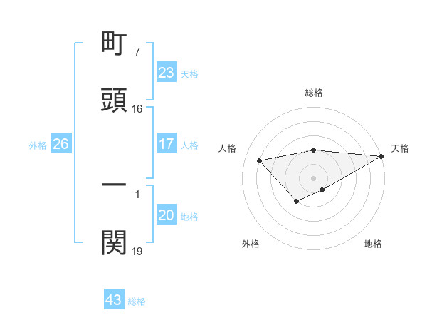 町頭 一関さんの総格は43画の2点!