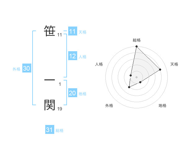 笹 一関さんの外格は30画の2点!