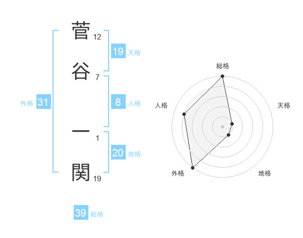 菅谷 一関さんを姓名の画数から五運を鑑定
