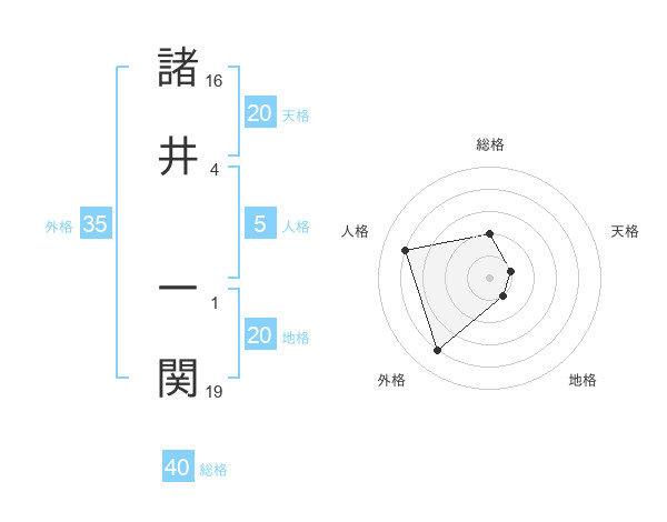 諸井 一関さんの地格は20画の1点!