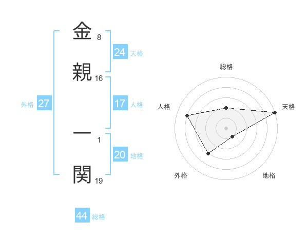 金親 一関さんの総格は44画の2点!