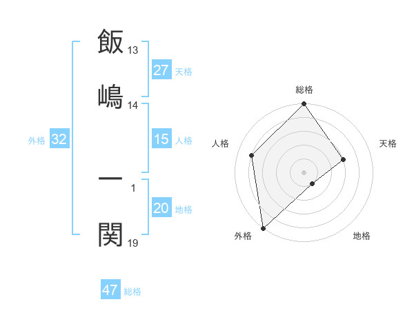 飯嶋 一関さんの総格は47画の5点!