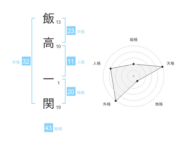 飯高 一関さんの外格は32画の5点!