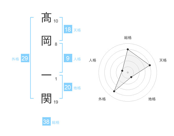髙岡 一関さんを姓名の画数から五運を鑑定