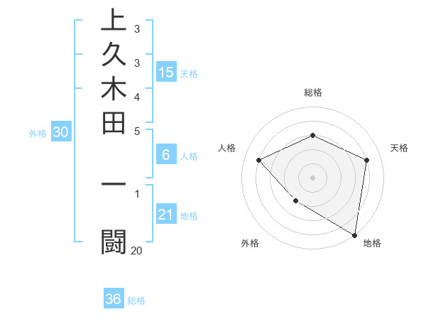 上久木田 一闘さんを姓名の画数から五運を鑑定