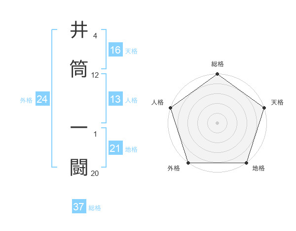 井筒 一闘さんを姓名の画数から五運を鑑定