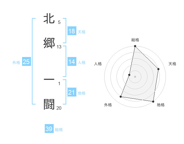 北郷 一闘さんを姓名の画数から五運を鑑定