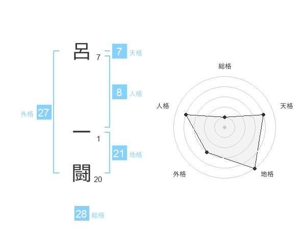 呂 一闘さんの総格は28画の1点!