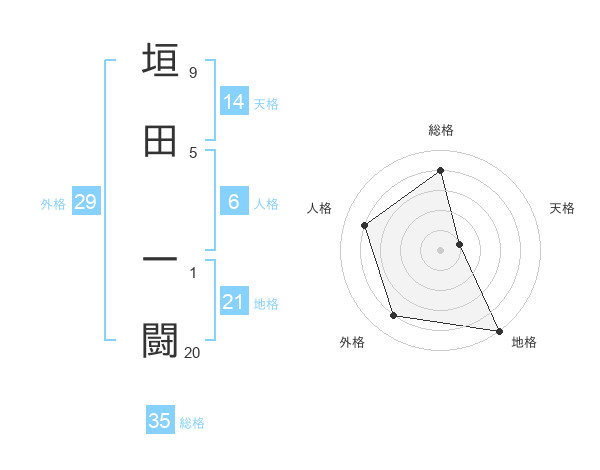 垣田 一闘さんを姓名の画数から五運を鑑定
